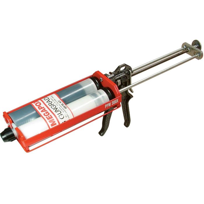 Industrial grade dispensing gun for dual component cartridges. Lightweight yet robust applicator for easy on the job operation. Suits twin 300ml epoxy type cartridges. Specifically designed to handle epoxies, adhesives and other materials that are supplied in 300ml dual side-by-side 1:1 ratio cartridges with mixing nozzles. Ideal for the construction, concreting and building industries, these applicator guns are lightweight for operator comfort.