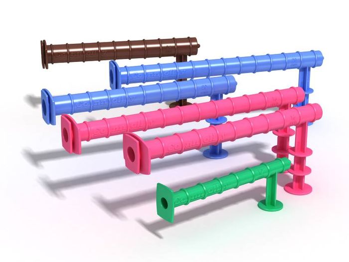 For a more economical and simple alternative the sleeves can be used in combination with Connolly Truline Dowel Caps to form a simple dowel assembly. Both the sleeves and the caps simply clip onto chaired R10 or Y12 support bars.