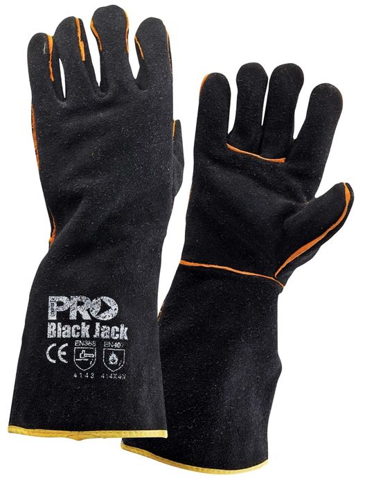 PRO CHOICE branded Pyromate Black Jack welding gloves. These traditional black and gold welders gloves are ideal for all welding applications.