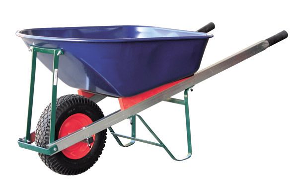 A 100 litre wheelbarrow, with a galvanised steel bucket and sturdy steel framing. Inflatable tubed type ensures this wheelbarrow is easy to manoeuvre on site.