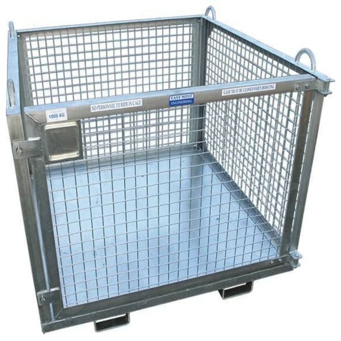 Stacking feet allow the cage to be stacked 3 high when empty (or 2 high when loaded)