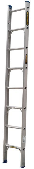 High quality Gorilla brand aluminium ladder. Wide range of heights available, from 2.4 metres to 6.1 metres. These industrial ladders feature strong roll-locked D-rungs with a non slip finish. The rubber non marking feet add extra grip. This builders ladder fits secured into scaffold couplers. The roll locked D-Shaped rungs on this industrial ladder adds strength and durability. Anti-slip treads minimise slipping.