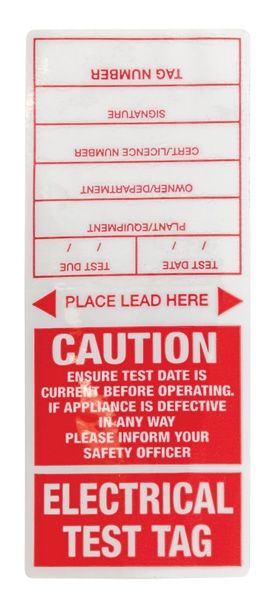 After applicance testing has been determined as a 'pass', these test tags are attached to the appliance lead indicating when it was tested, when the next test is due, and a tracking code. Re-testing intervals of equipment can vary from 3 months to 5 years, depending of the environment where the equipment is located. Check Australian Standard AS/NZS3760 and your local regulations for more detailed information.