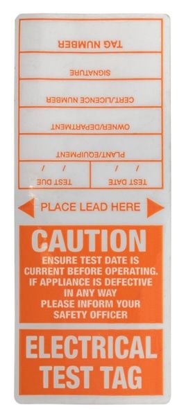 After applicance testing has been determined as a 'pass', these test tags are attached to the appliance lead indicating when it was tested, when the next test is due, and a tracking code. Re-testing intervals of equipment can vary from 3 months to 5 years, depending of the environment where the equipment is located. Check Australian Standard AS/NZS3760 and your local regulations for more detailed information.