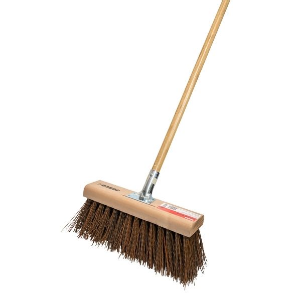 35cm all-purpose heavy-duty outdoor broom. Constructed with a metal connection bracket for increased reliable during heavy use. This broom is suitable for civil and construction contractors and road works, where a stiff broom is required to get the job done.