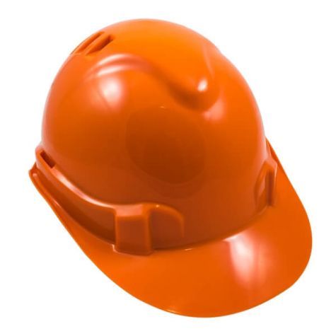 Premium hard hat with 6 point pushlock harness and vents for added comfort. This hard hat is lightweight in design with moulded air vents and a cotton sweatband, helping to prevent perspiration and humidity build-up in hot environments. The premium vented hard hat has an extended peak for added protection and an additional edge gutter to catch and deflect rain. With a six point push lock harness, it is easy to adjust for wearer comfort.