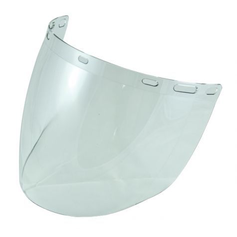 Use with a face shield hard hat attachment to convert a regular hard hat into a hard hat and face shield combination. When this polycarbonate face shield or visor is used with the addition of safety glasses, it provides superior high impact protection against grinding or chemical processes at work.