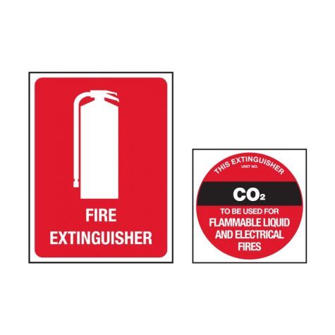 Fire extinguisher signs are vital for alerting workers to the location of fire extinguishers. These handy kits are supplied with one of our 300 x 225 mm rectangular poly extinguisher signs (SKU F001C), and an accompanying round poly symbol measuring 150mm showing the type of extinguisher.